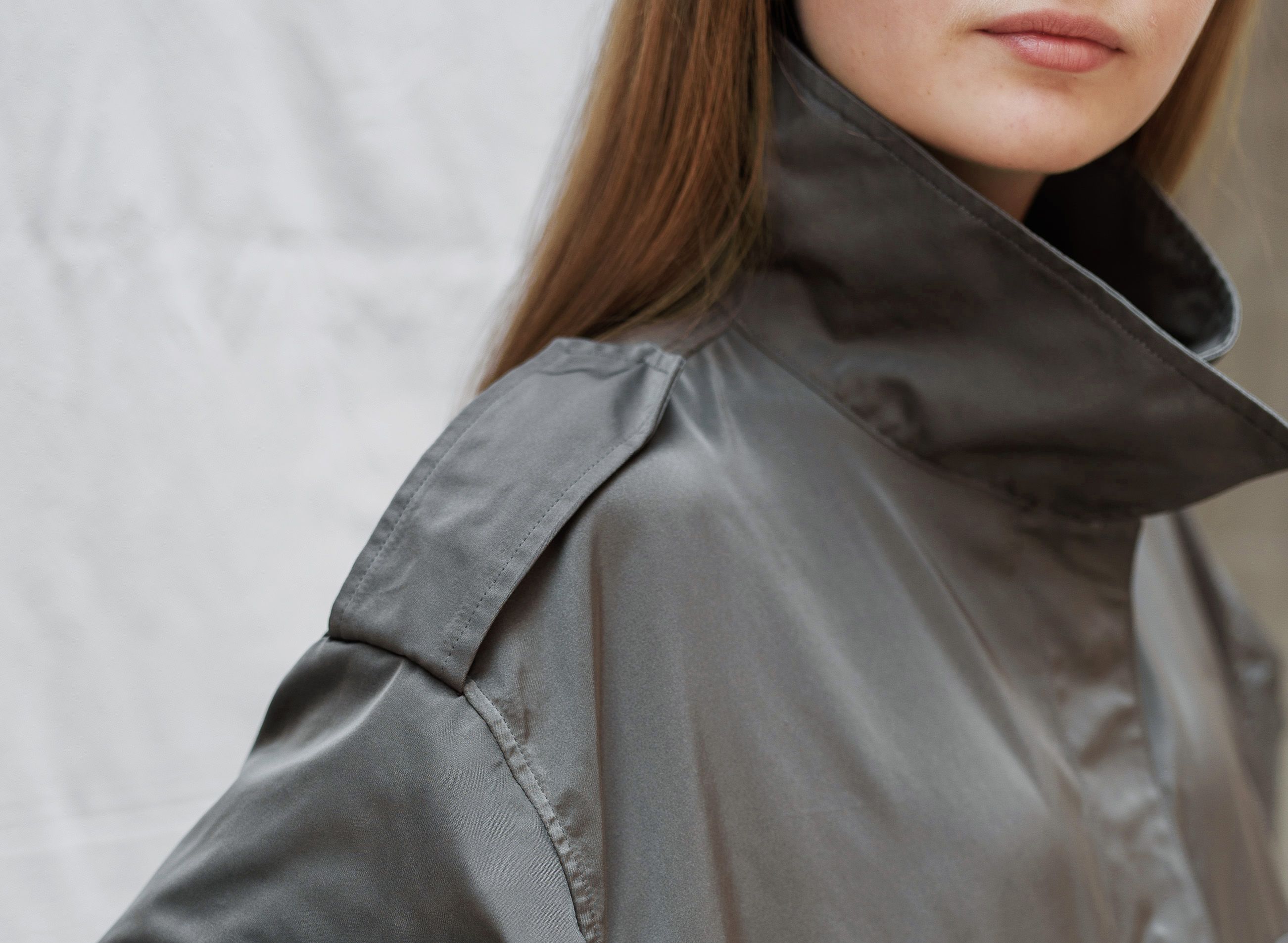 Loose fit Collection style in viscose taffeta & grosgrain fabrics.