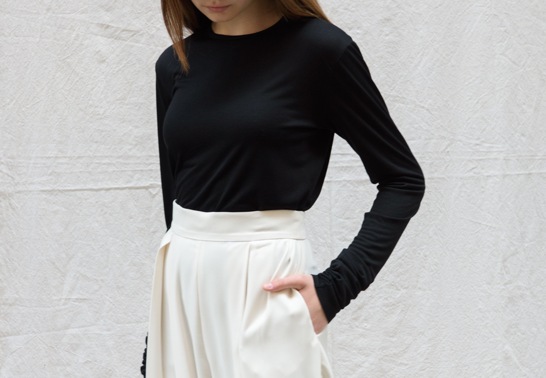 “Simple-complicated and precise artistic expression, the basic characteristics of this collection, is represented by a clear silhouette shaped in a comfortable garment piece.”