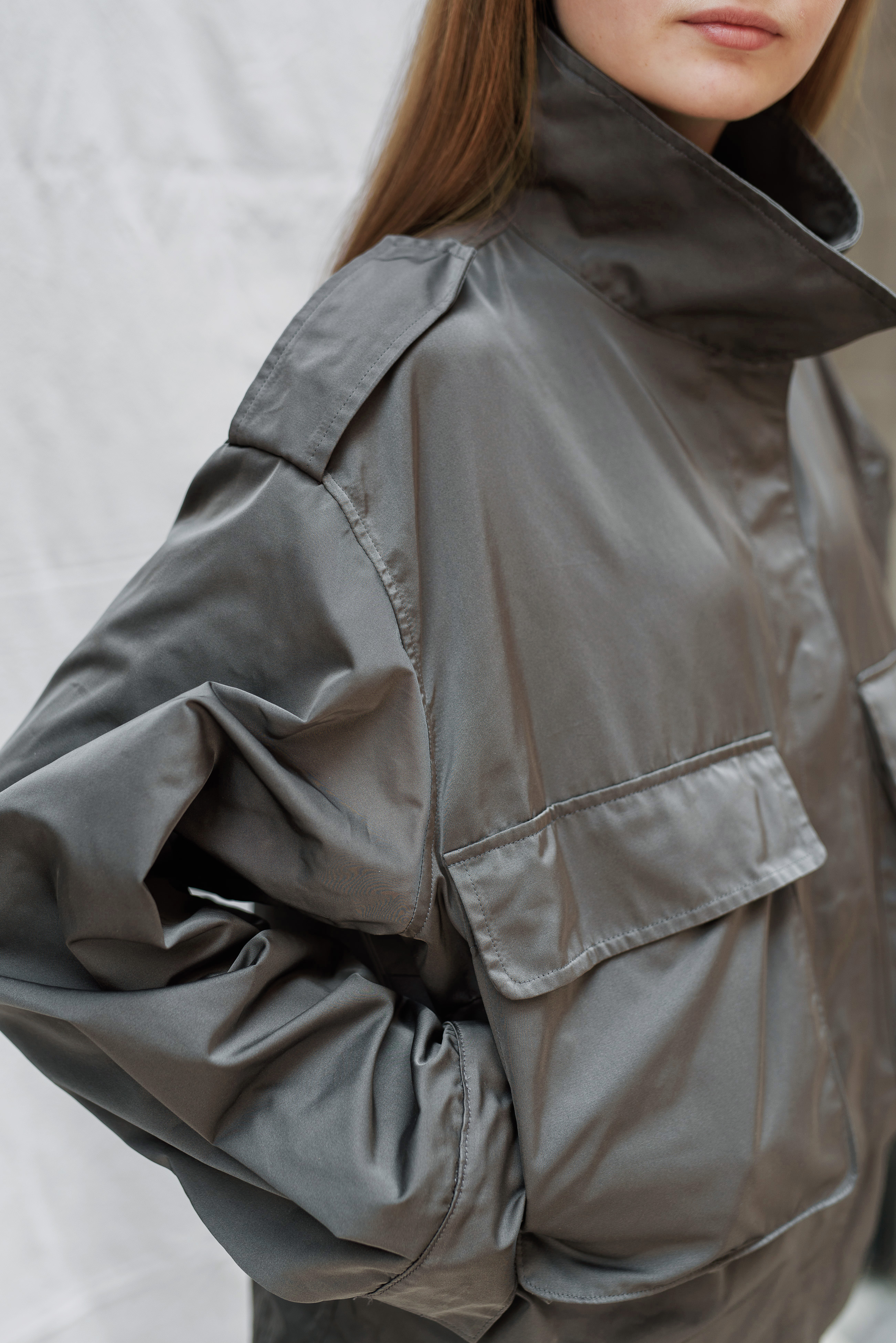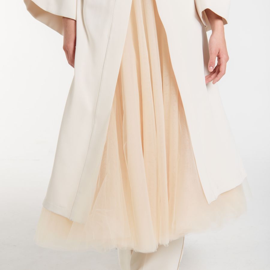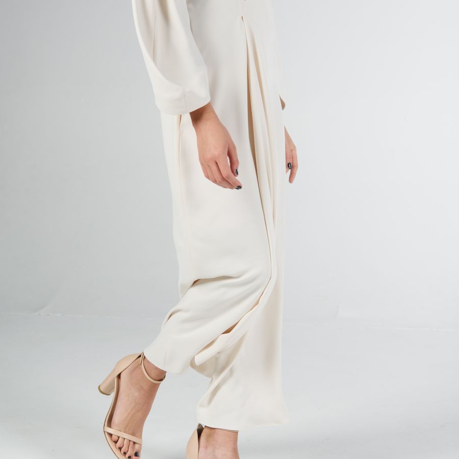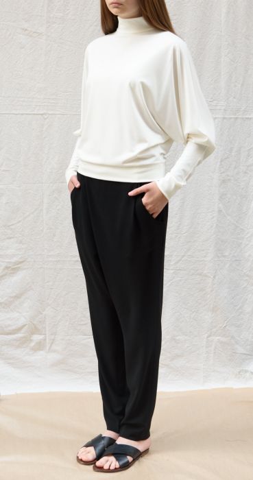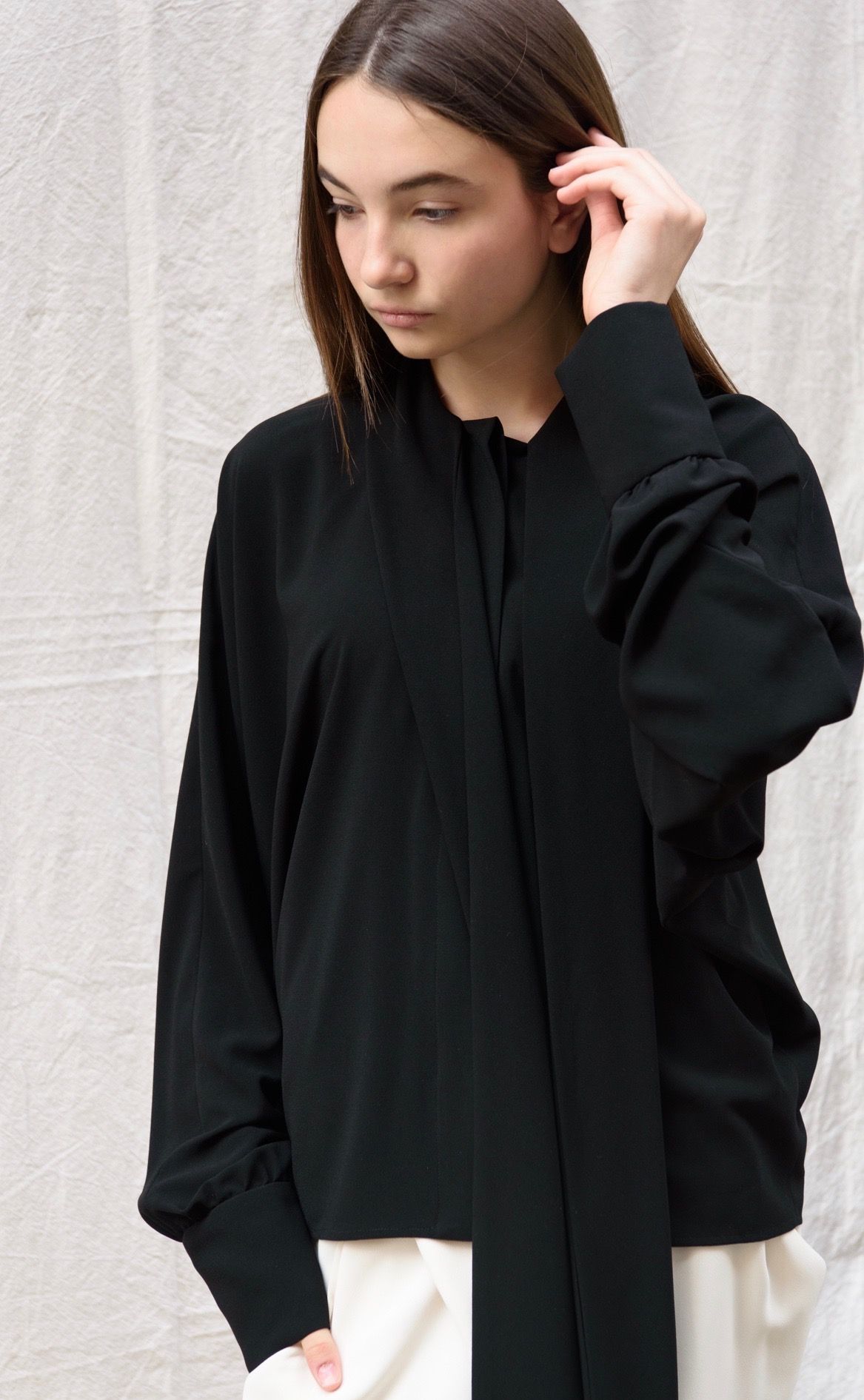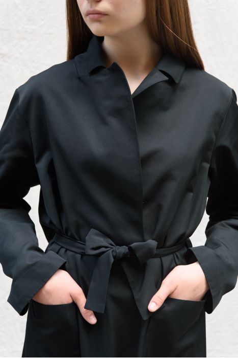 Loose fit Collection style in viscose taffeta & grosgrain fabrics.