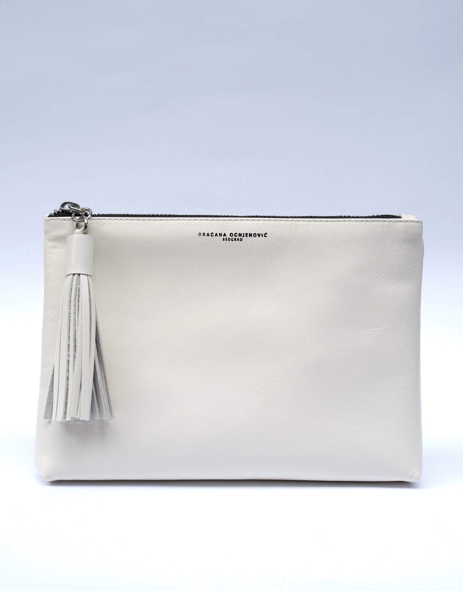 Premium leather small clutch purse with horizontal zip with tassel. Height 15 cm Width 21 cm
